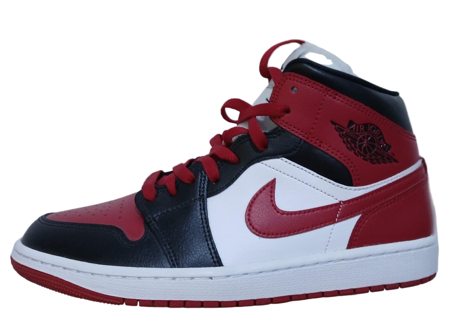 Tenis Air jordán 1 mid negro, blanco, rojo